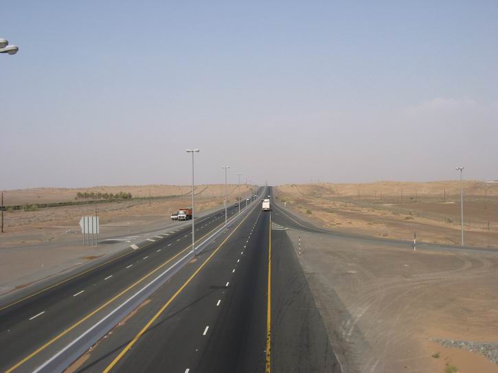 | Ein Dorf am Highway | Die Hauptstraße von Al Dhiad | Ein Sandsturm nähert sich | |