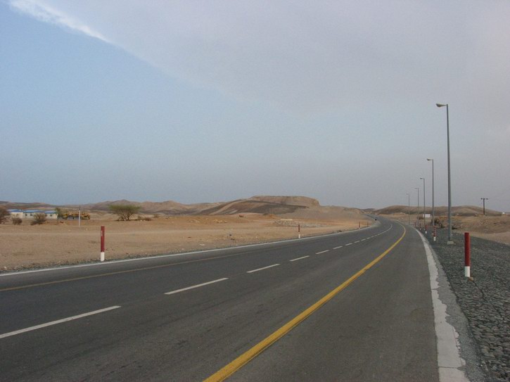 | Ortsausgang Al Dhaid | Links geht es in die Berge | Selbst in der "Einöde" sind die Straßen beleuchtet | |