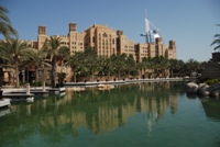 | Die Gebäude des Souk | Im Hintergrund das Jumeira Beach Hotel | Blick über den See | |