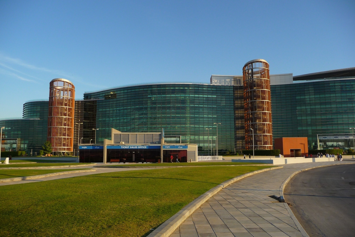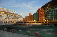 | Im Vordergrund der Bereich für die Präsentation der Rennpferde | Das Meydan Hotel | Der Eingang | |