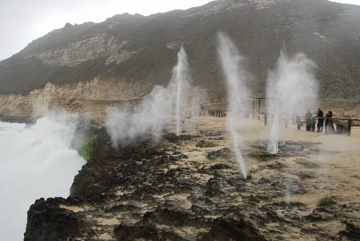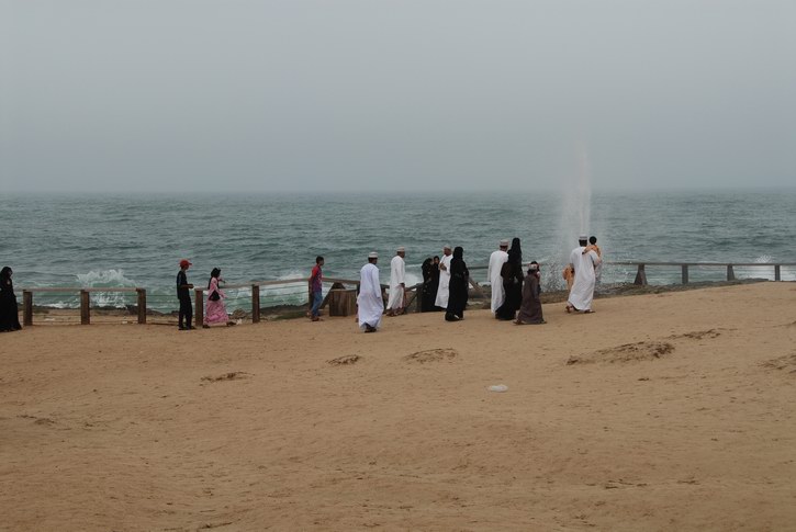 | Der Strand von Al Mughsayl | Die Küste von Al Mughsayl | Wasserfontänen | |